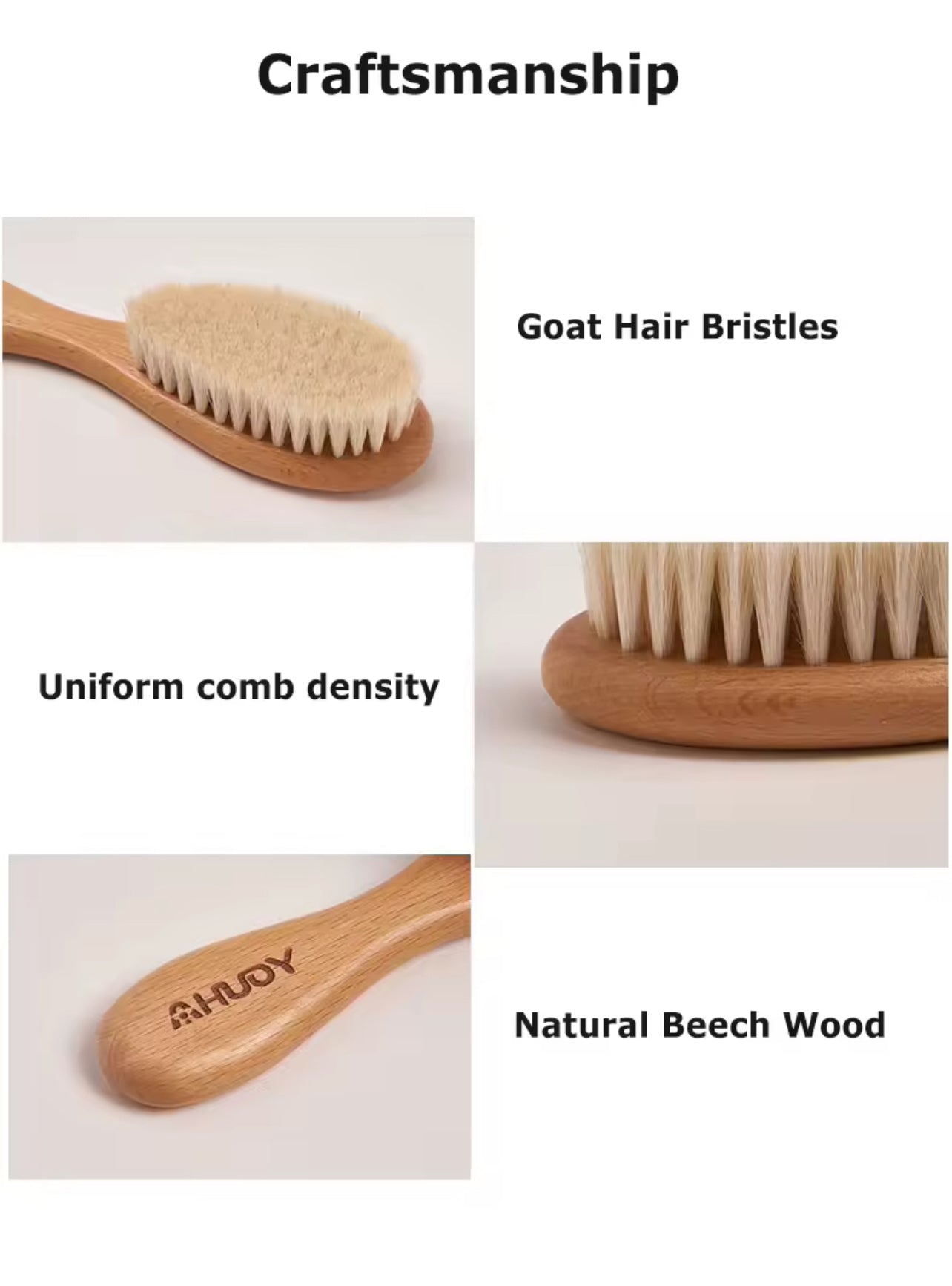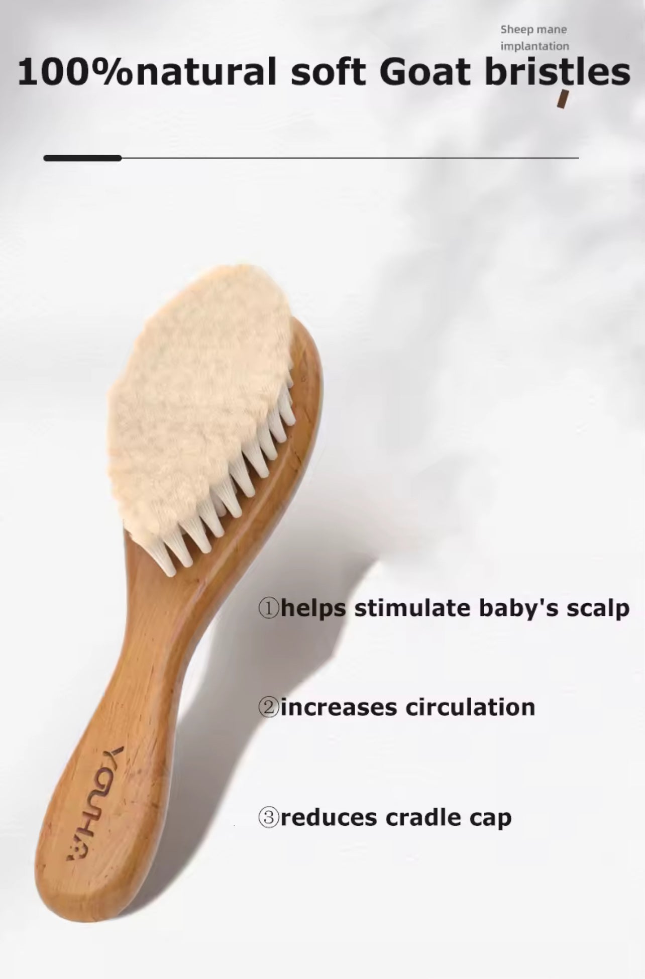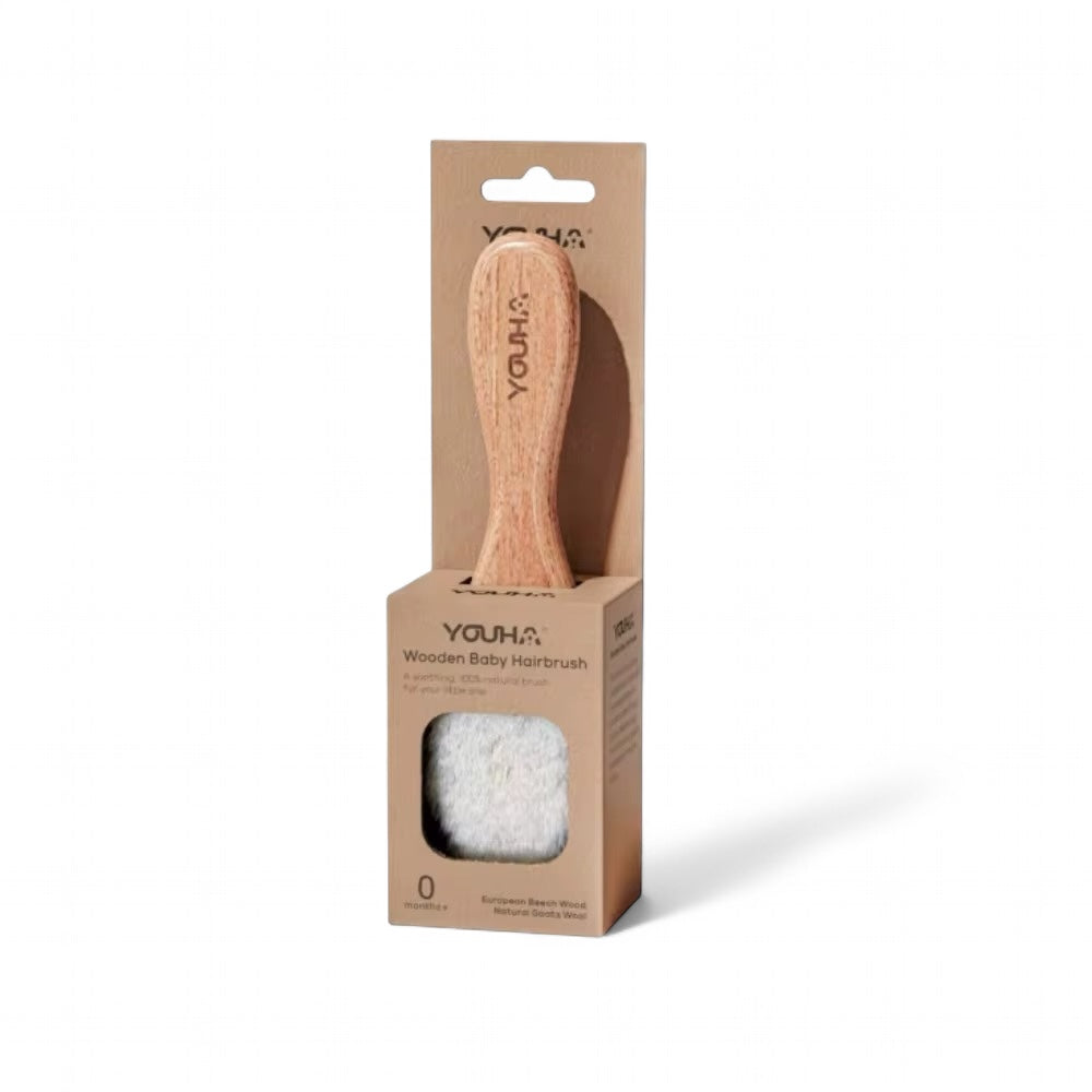 تمتعي بتجربة مميزة للعناية بشعر طفلك مع فرشاة الشعر الخشبية من YOUHA، المصنوعة من خشب الزان الأوروبي عالي الجودة وشعيرات ناعمة من صوف الماعز الطبيعي.