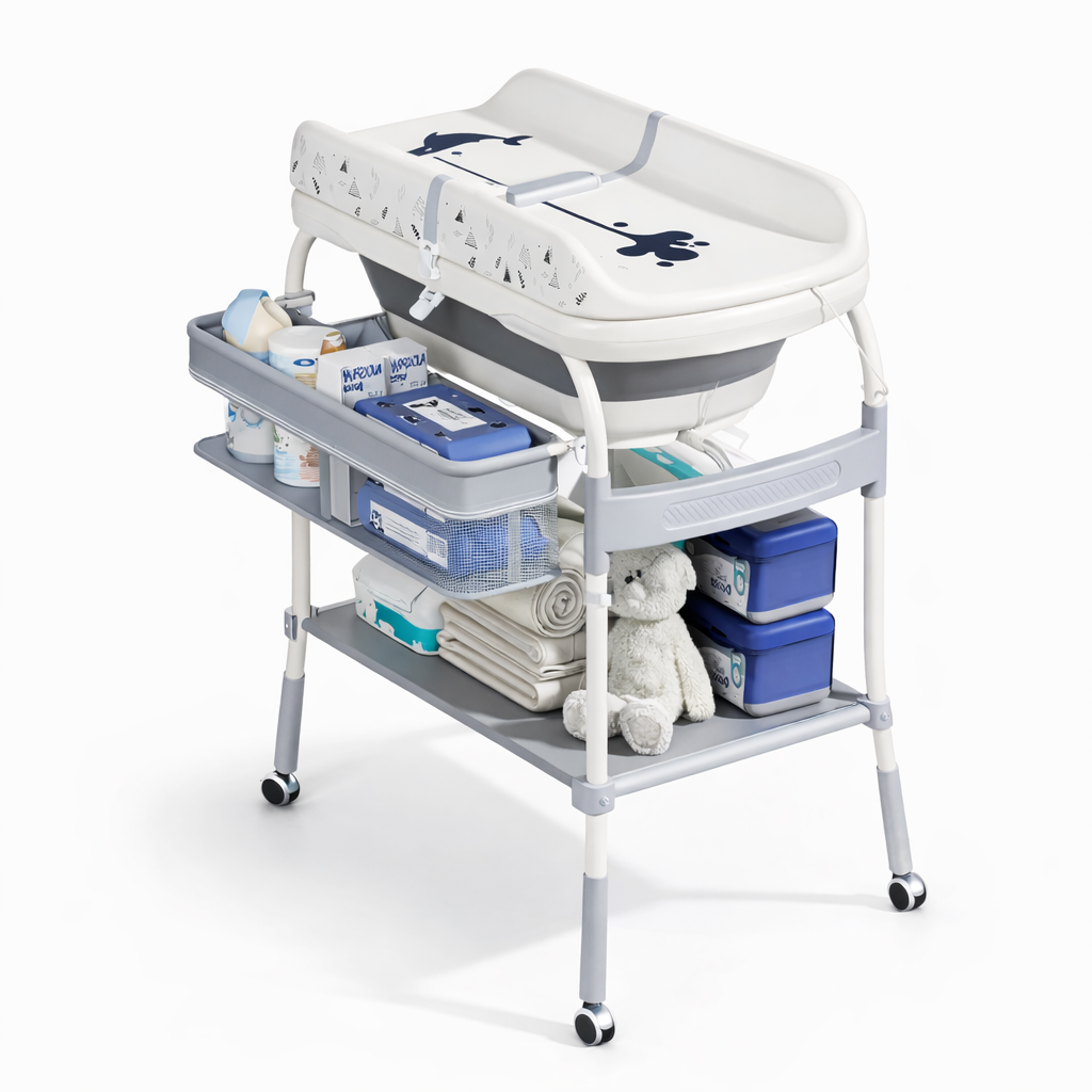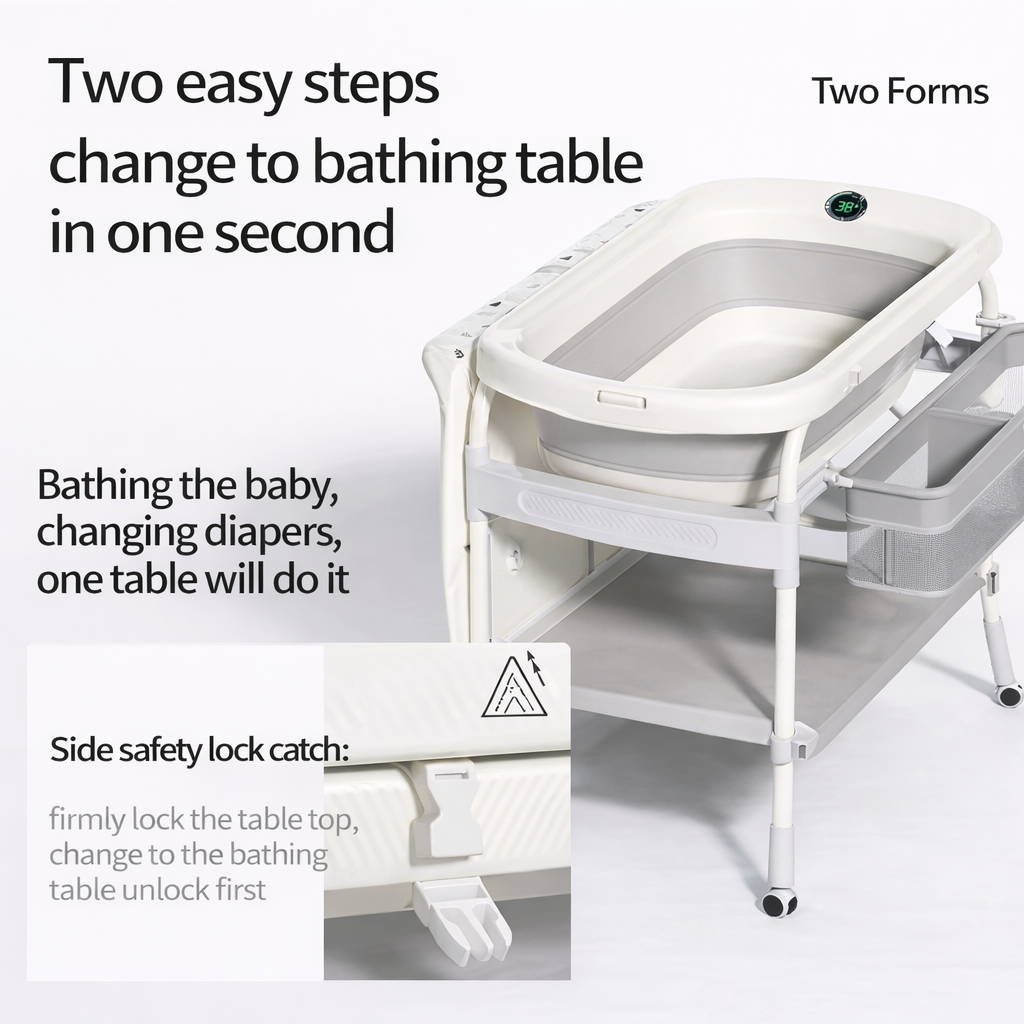 طاولة تغيير الملابس وحوض استحمام متعددة الوظائف