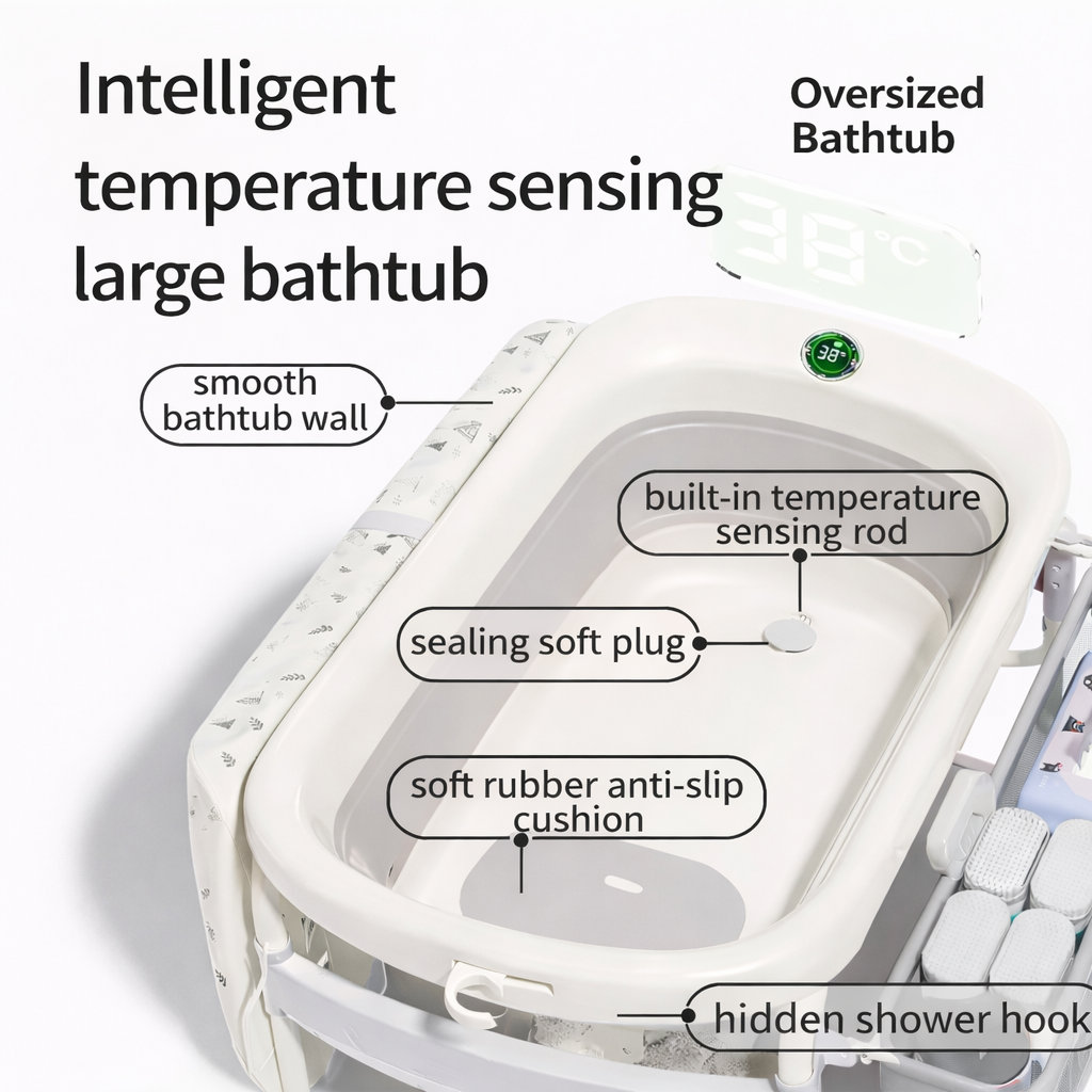 1. الاستخدام: حوض استحمام وطاولة غيار متعددة الاستخدامات للأطفال.