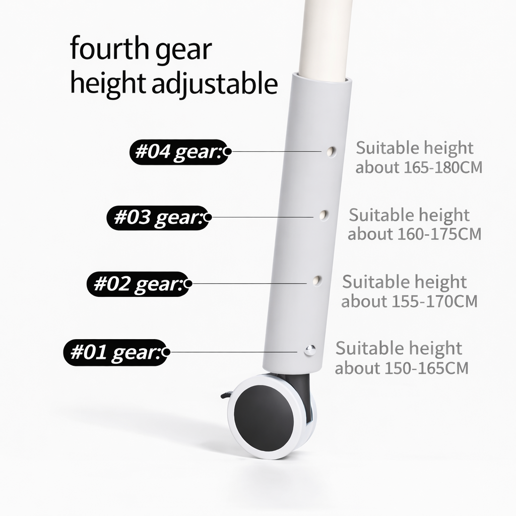 6. الارتفاع قابل للتعديل: 4 مستويات ليتناسب مع أطوال مختلفة من 150 إلى 180 سم.
