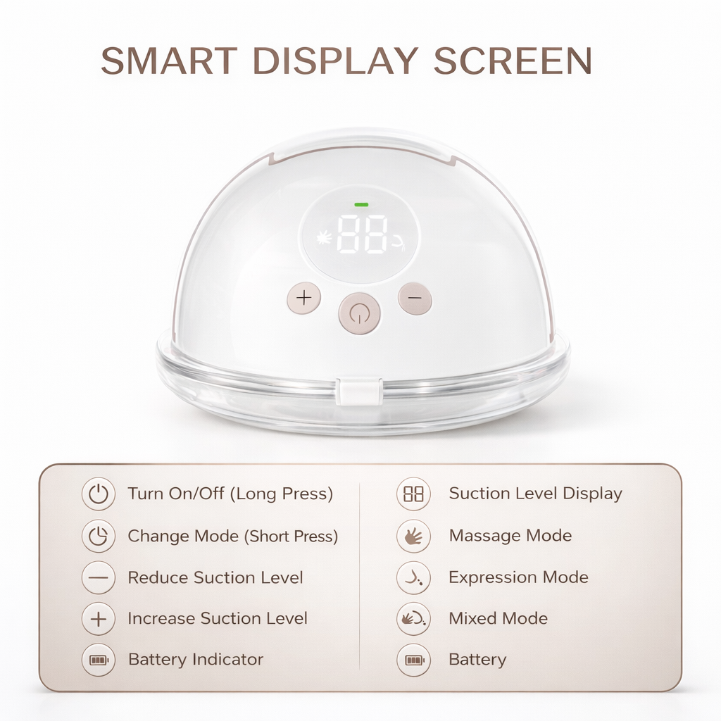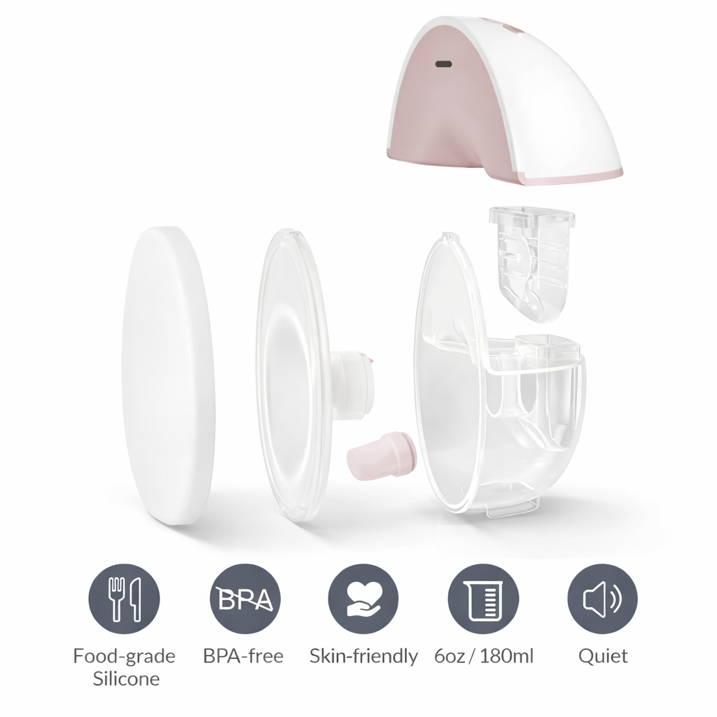 مضخة شفط حليب الأم القابلة للارتداء بتصميم ذكي يتيح للأم شفط الحليب بسهولة وحرية كاملة للحركة دون الحاجة إلى الأنابيب أو الأسلاك، حيث يمكن وضعها داخل حمالة الصدر لتجربة مريحة وهادئة في أي وقت.