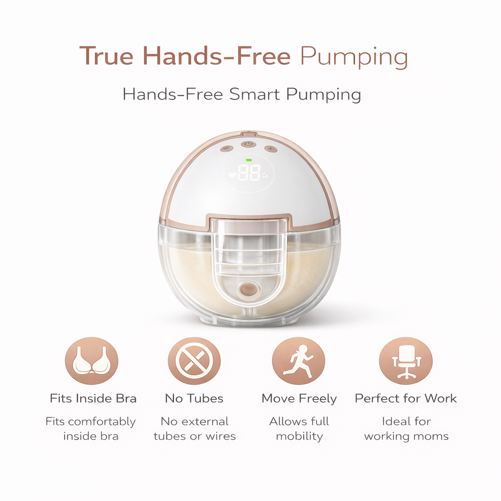 تصميم Hands-Free حقيقي يسمح باستخدام المضخة داخل حمالة الصدر بسهولة